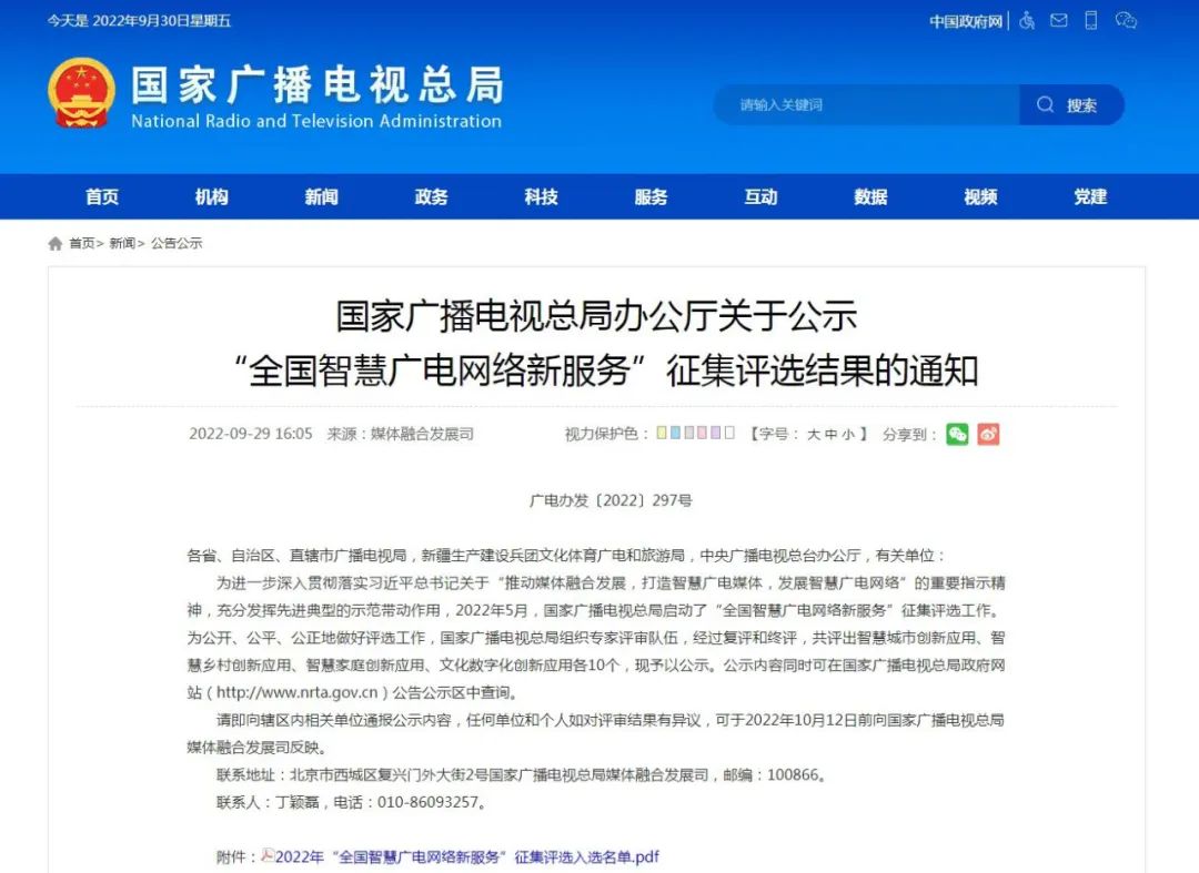 喜報 | “有事好商量”電視服務(wù)項目入選2022年“全國智慧廣電網(wǎng)絡(luò)新服務(wù)”之智慧城市創(chuàng)新應(yīng)用10佳案列