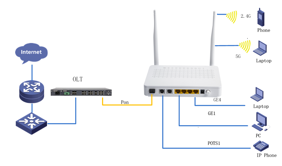 Support fast transmission of hardware NAT Hardware Specifications         interface: 1* G/EPON+4*GE+2.4G/5.8G WLAN+2*FXS